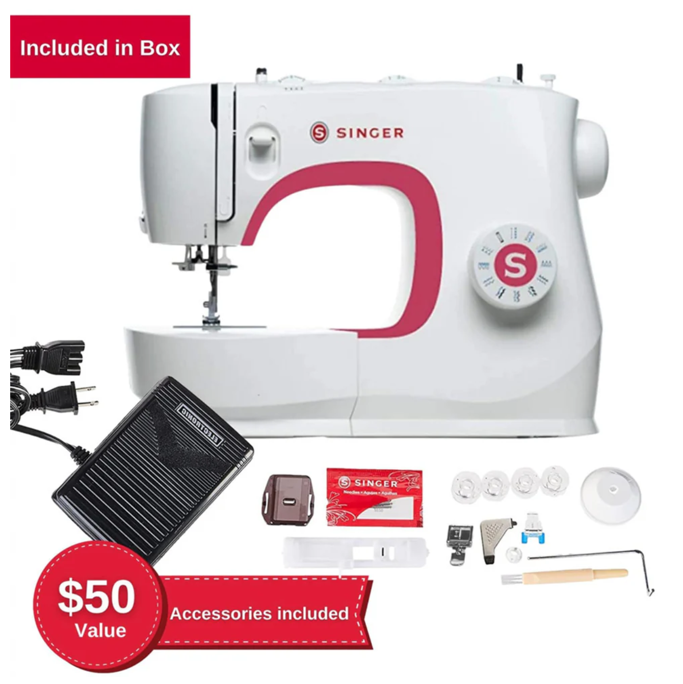 - Enfileur d'aiguille intégré (+) - Enfile sans effort le chas de l'aiguille - élimine la fatigue visuelle et vous fait gagner du temps.