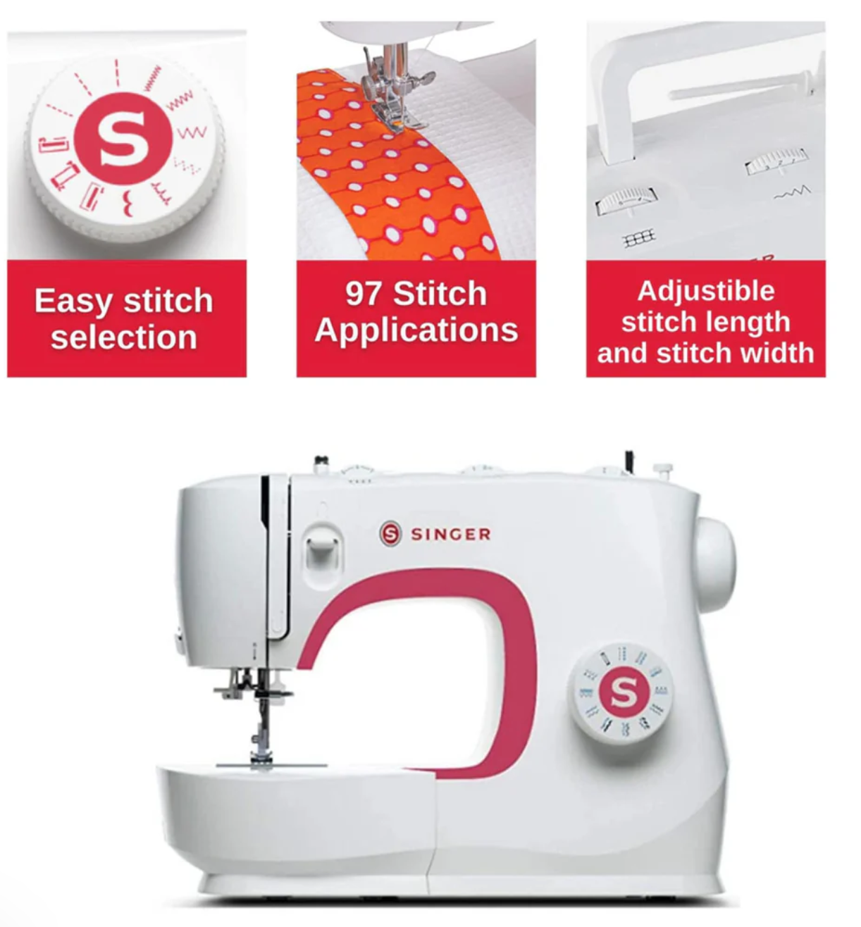 Voici la SINGER® MX231. Avec une gamme complète de points, la machine à coudre SINGER® MX231 est parfaite pour tous les types de couture. Avec les points de base, décoratifs et extensibles, vous pouvez coudre une large gamme de tissus, des tissus transparents aux tricots extensibles, en passant par le denim et bien plus encore.