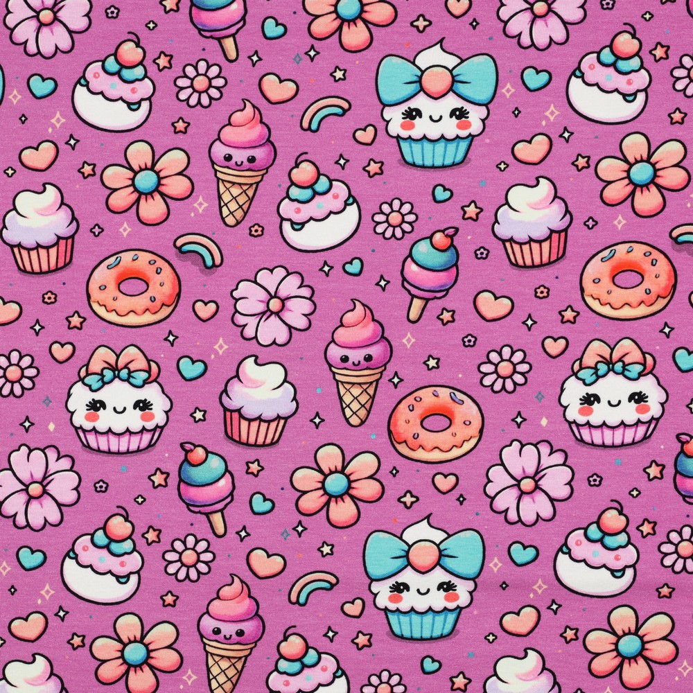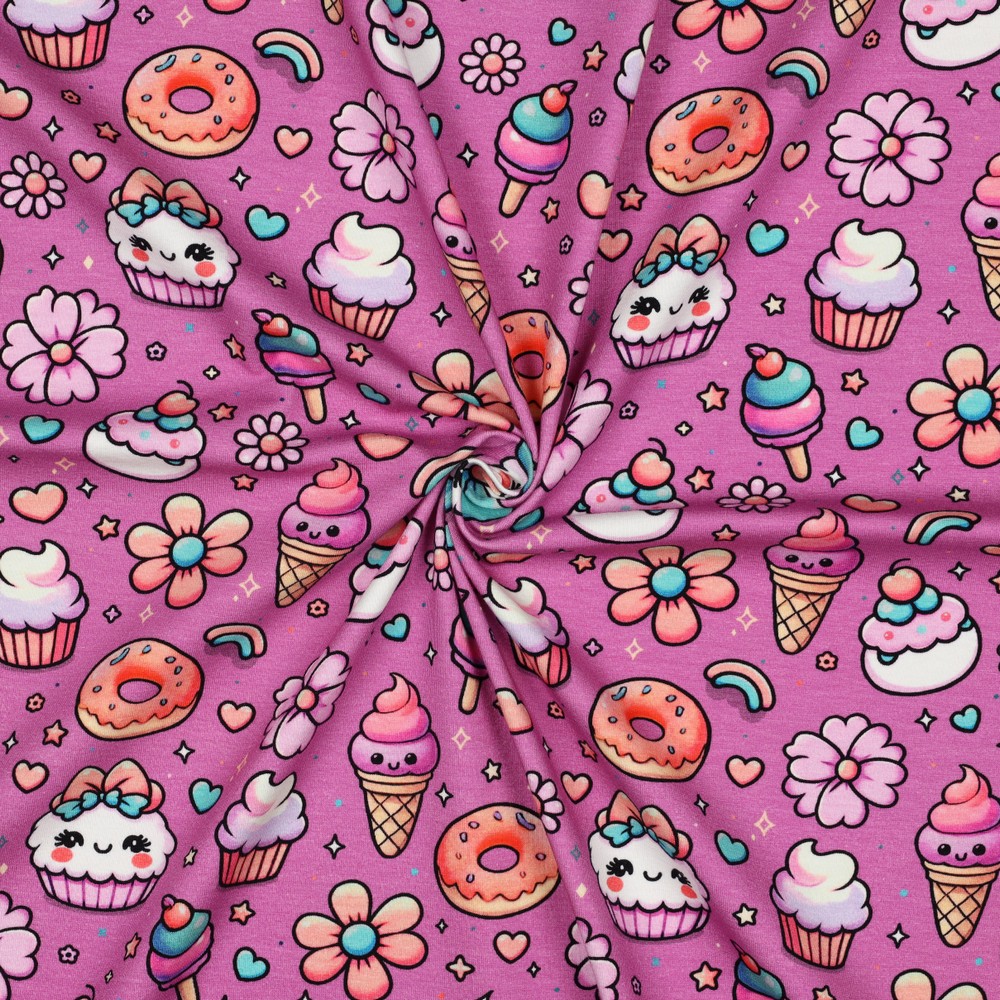 Sucreries fond fuchsia - Jersey 1/2 m