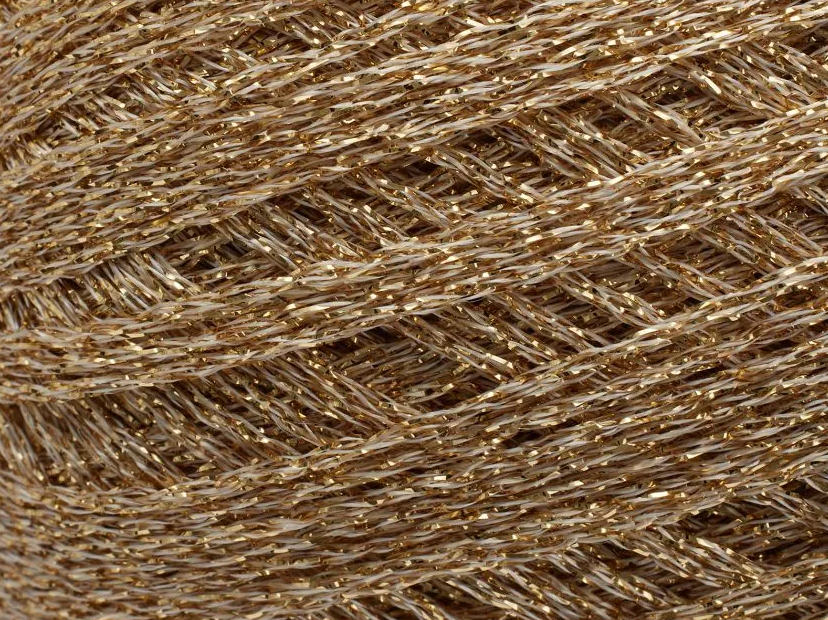 Paia est notre fil pailleté, composé à 67 % de viscose et à 33 % de polyester métallisé. Grâce à sa teneur en viscose, Paia est plus doux que la plupart des fils pailletés.