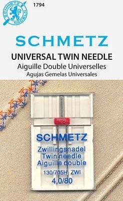 Deux aiguilles universelles montées sur une seule tige pour créer deux rangées de points en même temps. Utilisez sur plusieurs tissus tissés et tricots.