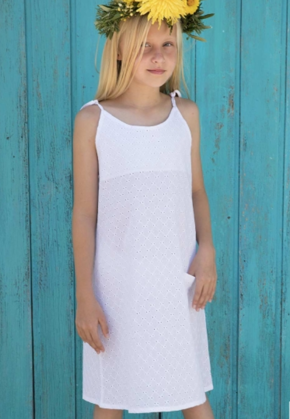 Tissu 100% coton avec une broderie fantaisie et un motif ajouré, le tout en blanc. Un tissu moyen d'épaisseur entre la popeline et le voile de coton. Un motif simple, géométrique et élégant ce qui rend ce tissu parfait pour la confection de tout type de vêtements pour femme et enfant.