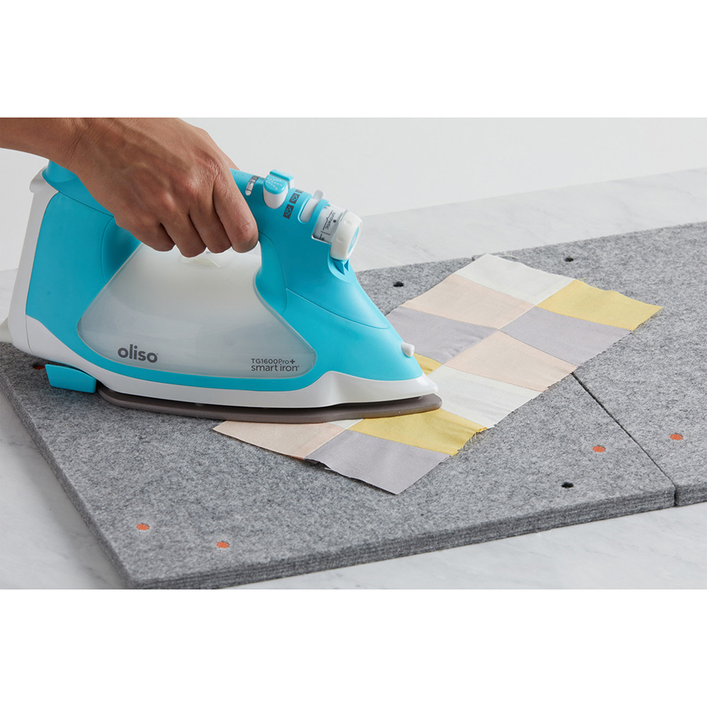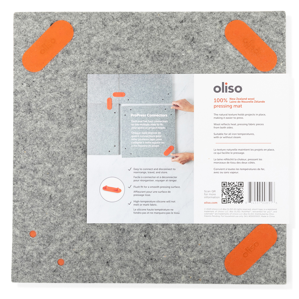 Le Wool Pressing MultiMat™ est un tapis de 14inx 14in composé à 100% de laine de la Nouvelle-Zélande, de ½in d'épaisseur, parfait pour la courtepointe et la couture. Son système unique ProPress Link™ vous permet de personnaliser votre zone de repassage en connectant plusieurs tapis avec des liens en silicone réutilisables et résistants à la chaleur. Doté de fibres de laine denses, il repasse simultanément les deux faces du tissu pour un repassage efficace et de qualité professionnelle. Le tapis maintient les projets à plat pour éviter les étirements et est compatible avec les fers à repasser Oliso Mini Project et Smart. Compact mais pratique, le format de 14in x 14in s'adapte bien à côté d'une machine à coudre et est facile à ranger.