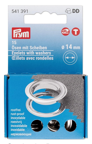 Embellir sans couture ? C’est facile ! Les œillets avec rondelles de Prym sont très polyvalents et ajoutent un véritable plus s’agissant de fermetures à lacet, de création, de décoration intérieure. Les œillets inoxydables sont en laiton argenté et sont disponibles avec les diamètres intérieurs de 11 mm à 14 mm. Les œillets doivent être fixés fermement, en tant qu’ils ne tournent plus – cela évite que l’œillet arrache. Prym offre des œillets avec rondelles qui peuvent être utilisés avec le Vario Creative Tool et le jeu d’outils approprié.