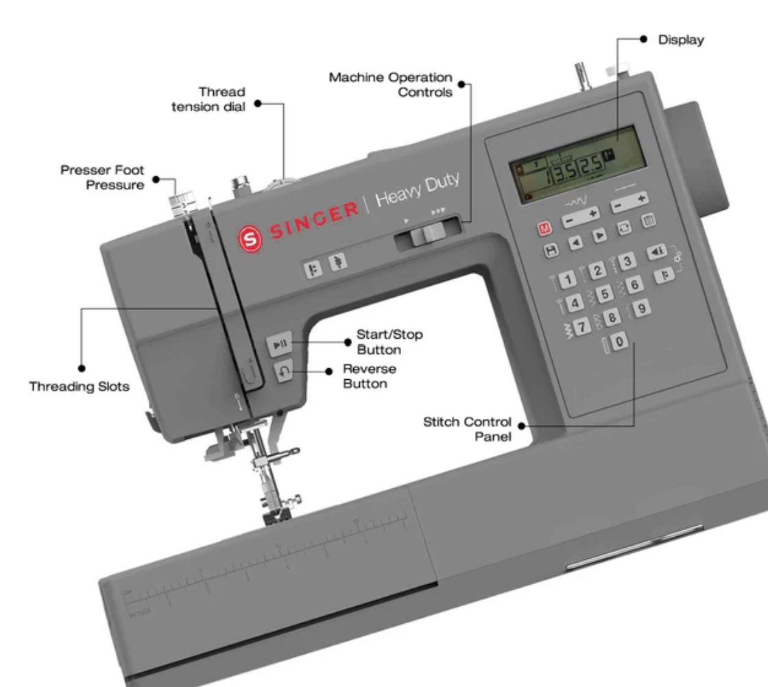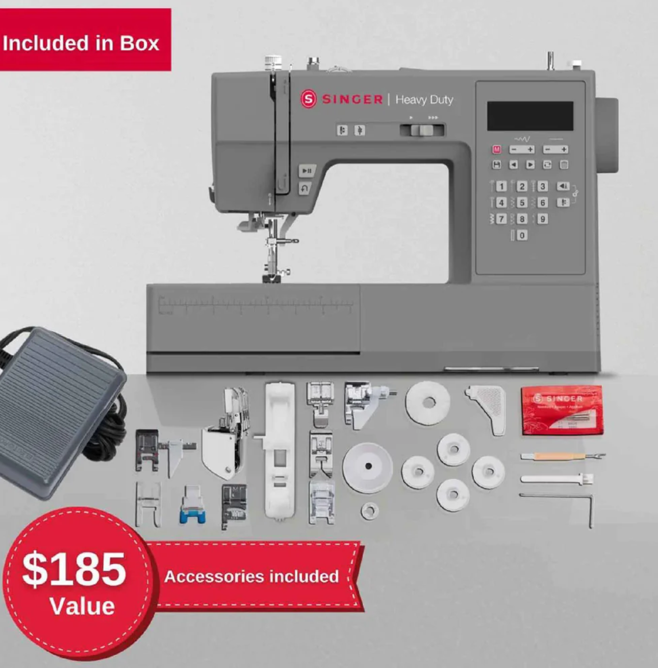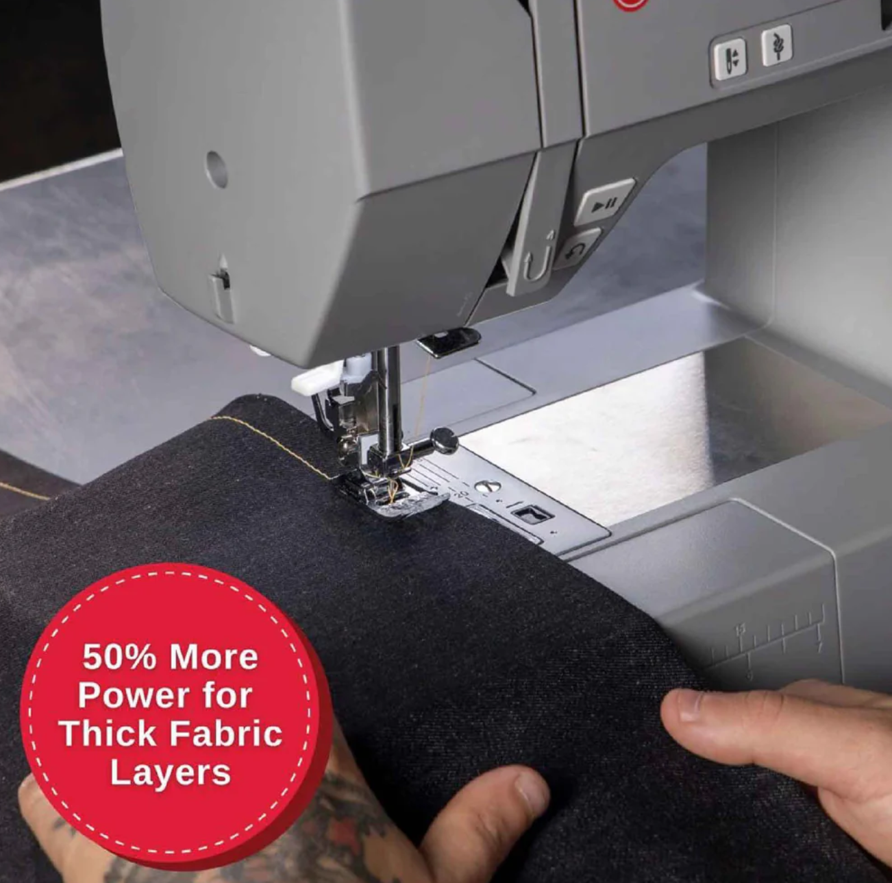La machine à coudre informatisée Heavy Duty 6700C a été conçue pour réaliser vos projets lourds, du denim à la toile. Grâce au puissant moteur de la machine, vous bénéficiez d'une vitesse de couture très élevée qui vous permet de gagner du temps. L'espace de gorge (espace de travail entre l'aiguille et la tour) est de 6,4" ou 163 mm.