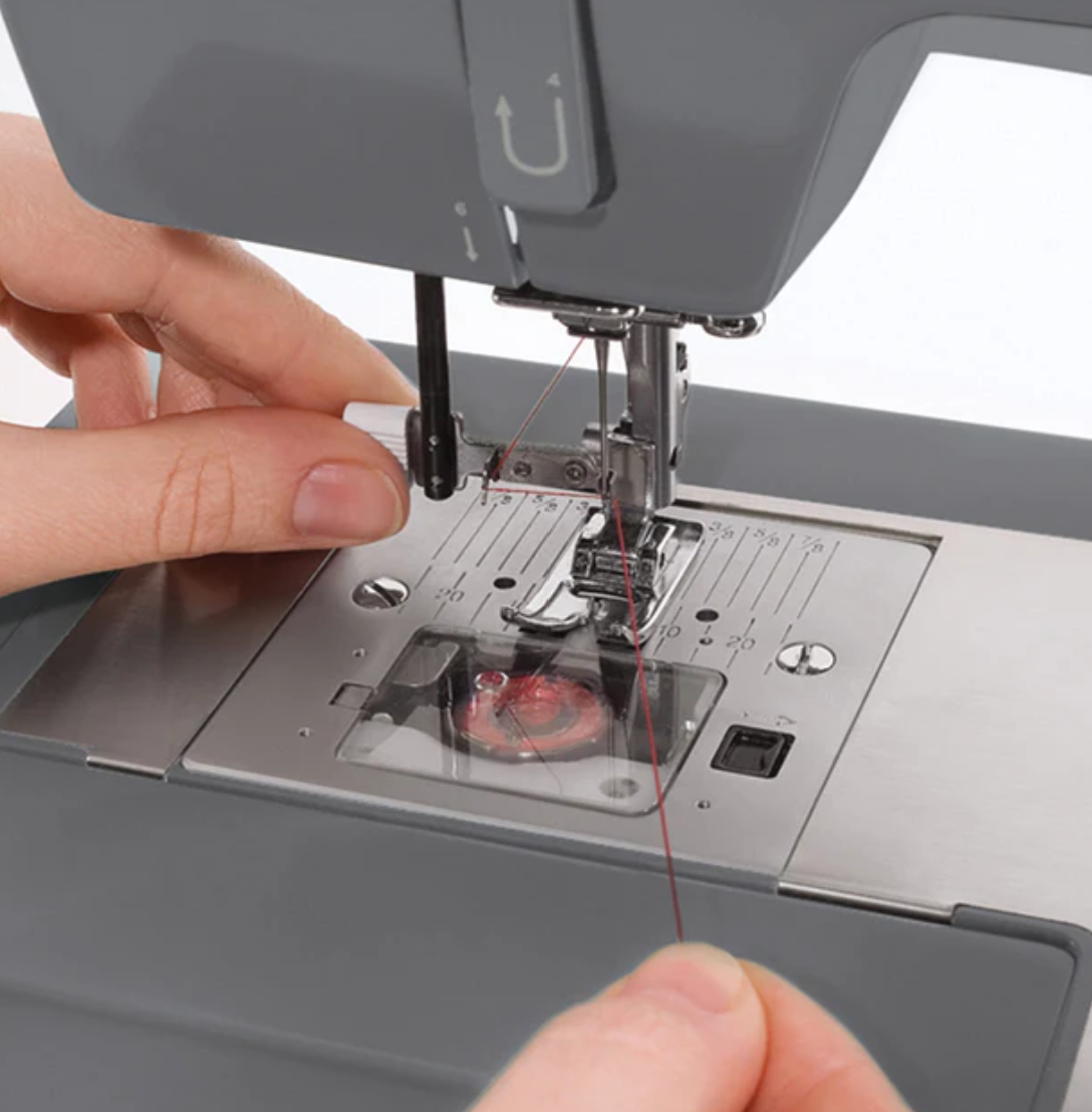 - - Top Drop In Bobbin (+) - Facile à enfiler et facile à voir ! La canette et le couvercle transparents vous permettent de surveiller votre réserve de fil afin de ne pas en manquer au milieu d'une couture.