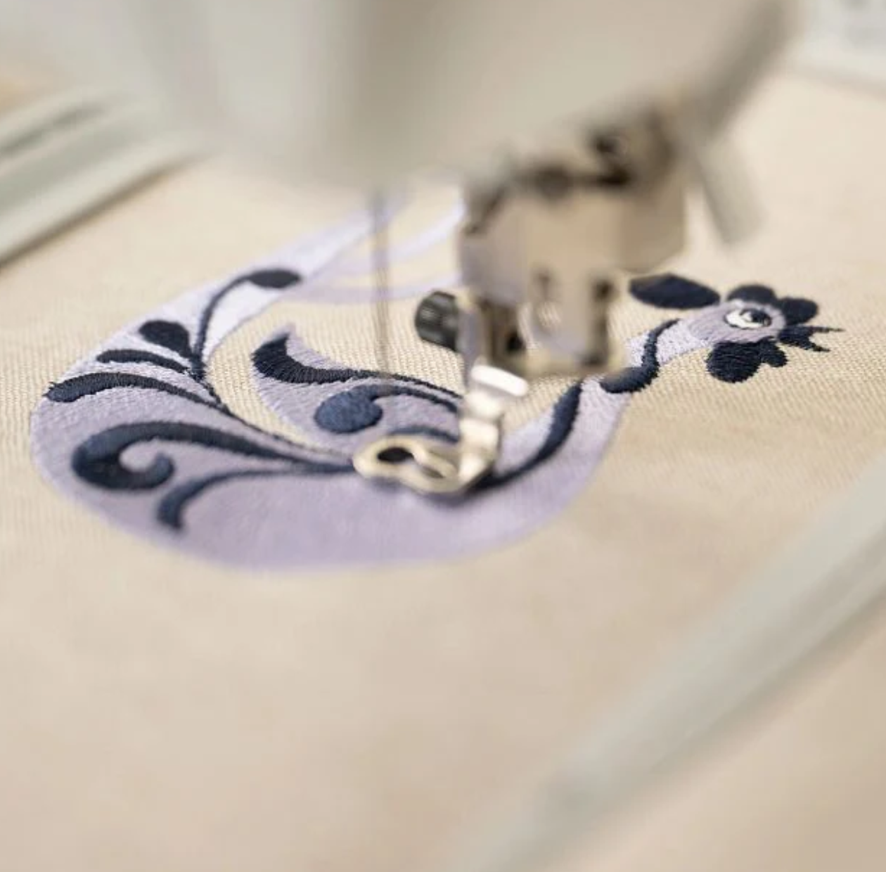 180 motifs de broderie : Des modèles issus d'un large éventail de catégories ou de thèmes sont intégrés et facilement accessibles directement à l'écran. Ils peuvent être mis à l'échelle, pivotés et même combinés pour créer des mises en page personnalisées.