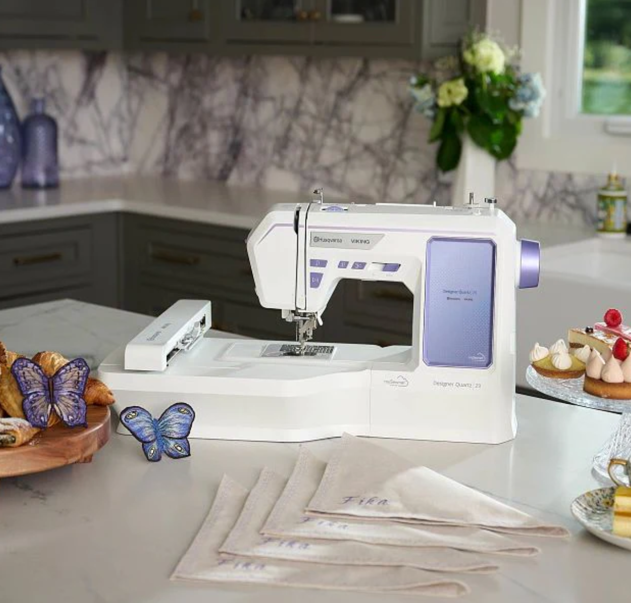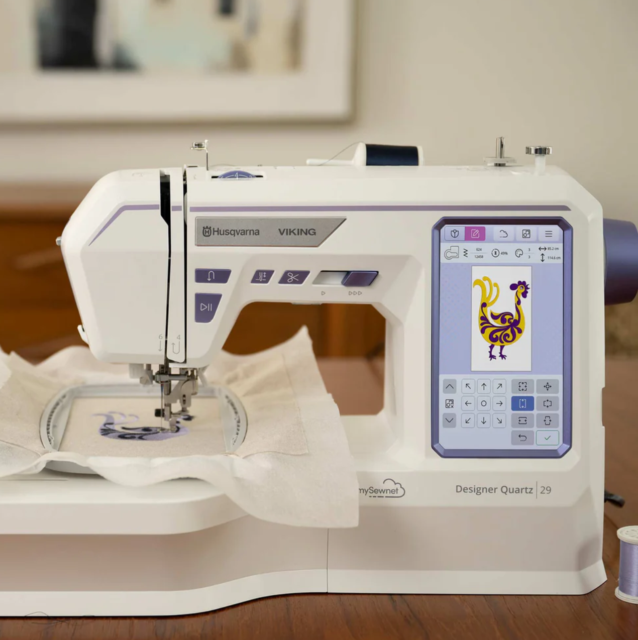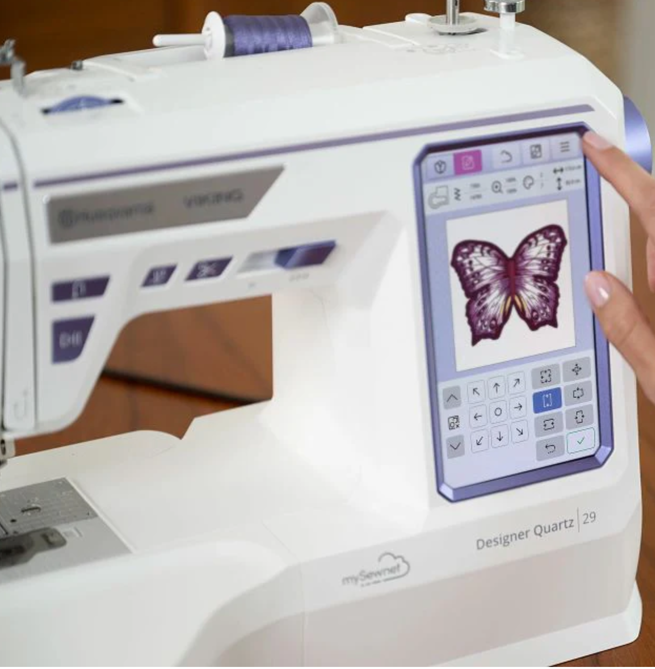 La machine à coudre et à broder HUSQVARNA® VIKING® DESIGNER QUARTZ™ 29 offre des fonctionnalités telles qu'un grand écran tactile couleur de 7" (17,8 cm) et une connectivité WiFi, ce qui permet même à une débutante de coudre et de broder en toute confiance. Cousez des motifs de broderie, des monogrammes et des séquences de points uniques à...