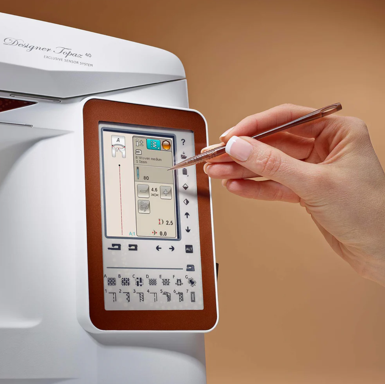 Updates: Internet updates ensure that your DESIGNER TOPAZ™ 40 sewing and embroidery machine is always up to date.