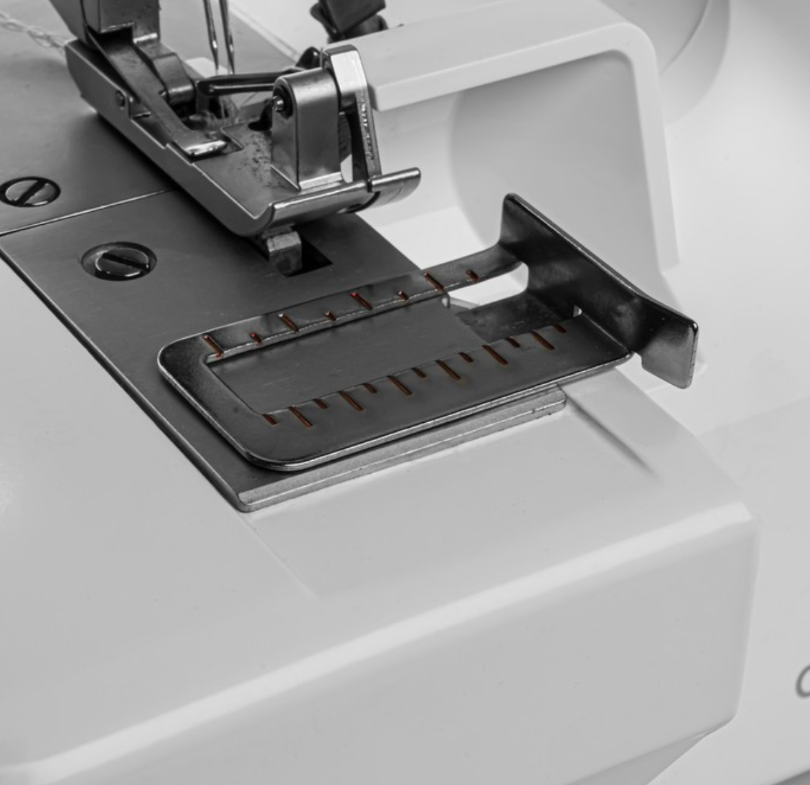 - Entraînement différentiel : Coutures parfaitement régulières - pas d’étirement ou de déformation des tricots ni de plissement des tissus plus fins. Cette caractéristique peut également être utilisée pour froncer.