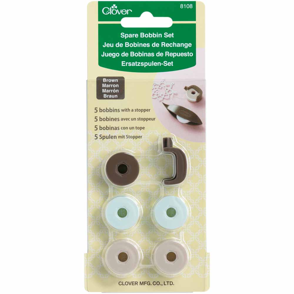 Spare Bobbin Sets are for exclusive use with Clover Bobbin Tatting Shuttles. Package includes five bobbins and one stopper.