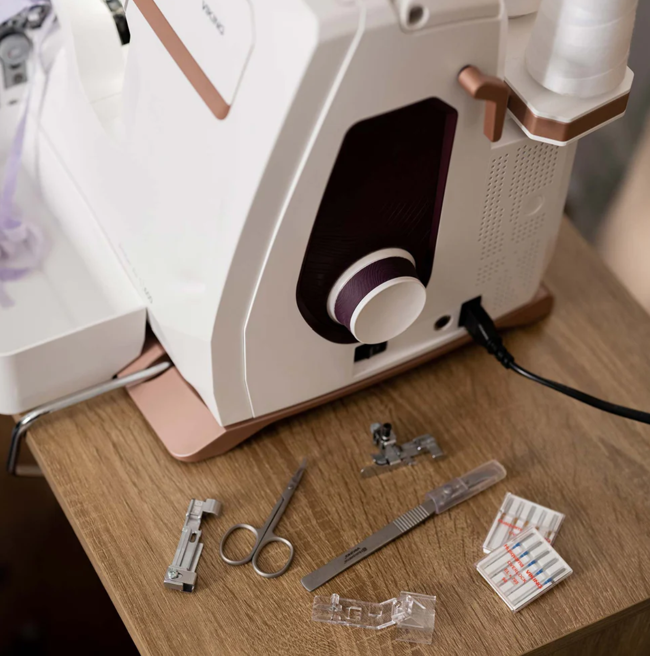 • Porte-pincette et porte-ciseaux intégrés : Supports intégrés sur le guide-fil.