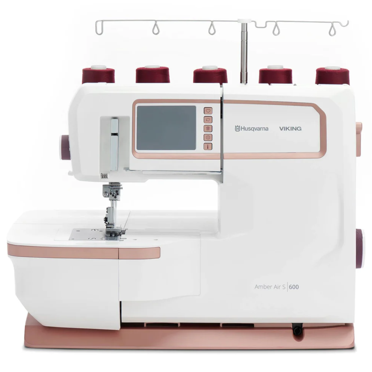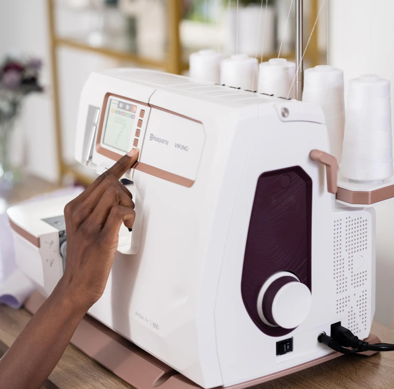 Découvrez comment la technologie innovante de la machine AMBER™ Air S|600 Coverlock "Coverstitch" pourrait vous mener n'importe où. Explorez ses caractéristiques haut de gamme, notamment : - Enfileur électronique de boucles à une touche - Enfilez sans effort les boucles de la machine en appuyant sur un bouton. - Écran tactile couleur - Sélectionnez votre point et les tensions de fil optimales, la longueur de point recommandée, etc. sont réglées automatiquement et affichées sur l'écran tactile couleur. Inclut des options multilingues et des informations sur l'utilisation de chaque point. - SEWING ADVISOR™ exclusif - La fonction SEWING ADVISOR™ exclusive définit instantanément la meilleure longueur de point, l'entraînement différentiel et la tension du fil pour le point choisi et recommande des aiguilles et plus encore pour des résultats parfaits. Il suffit de saisir le type de tissu que vous cousez pour que les réglages changent automatiquement. - Un éclairage exceptionnel - Les 5 lampes LED offrent un éclairage exceptionnel de la zone de couture pour une visibilité optimale dans n'importe quelle pièce. - 26 points - La capacité de point de fil 5/4/3/2 permet de réaliser des points de recouvrement, des points de sécurité, des points de surjet, des points flatlock, des ourlets roulés et bien d'autres choses encore. Vous pouvez piquer, découper, surfiler, ourler et embellir un large éventail de projets, le tout en une fraction du temps. - Contrôle précis du fil -Grâce à cette fonction brevetée, vous pouvez facilement ajuster la quantité de fil de surjet pour que les points se forment toujours proprement le long du bord du tissu pour des résultats optimaux. - Bras libre - Le bras libre permet d'accéder facilement aux petits travaux comme les poignets, les ourlets et les vêtements pour enfants. - Levée du genou - Levée du pied-de-biche mains libres pour plus de facilité et de contrôle. - Table d'extension incluse - La table d'extension offre un espace de travail supplémentaire de 30 cm (12"). Cette table comporte également une série de trous d'épingle régulièrement espacés pour accueillir l'épingle pivotante incluse pour les coutures circulaires. - Tension automatique - La tension automatique vous permet d'obtenir un résultat optimal pour chaque point. Vous avez également la possibilité d'affiner la tension pour des techniques, des fils ou des tissus particuliers. - Zone de travail spacieuse - La zone située à droite de l'aiguille mesure 64 mm de haut et 123 mm de large, ce qui offre suffisamment d'espace pour coudre des projets plus importants. - Contrôle de la vitesse - Choisissez parmi cinq réglages de vitesse différents, ce qui vous permet de régler la vitesse de couture maximale de votre machine selon vos préférences. - Alimentation différentielle - Coutures parfaitement régulières sans distorsion ; peut également être utilisé pour le fronçage. Caractéristiques supplémentaires : - Boucleurs électroniques à filetage pneumatique à une touche - Écran tactile couleur - Conseiller exclusif SEWING ADVISOR™ - Un éclairage exceptionnel - Contrôle précis du fil